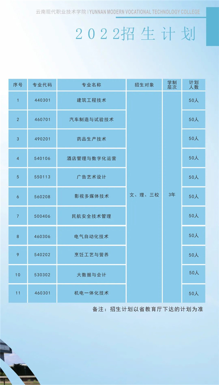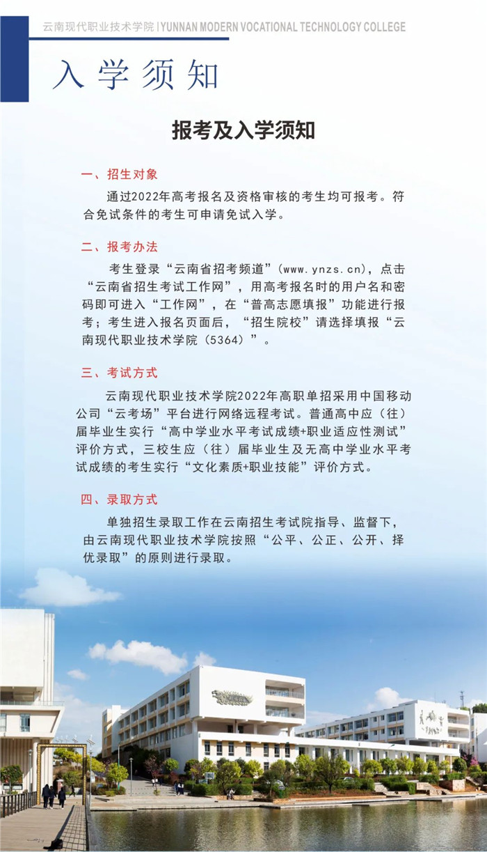 云南现代职业技术学院2022年高职单招招生简章